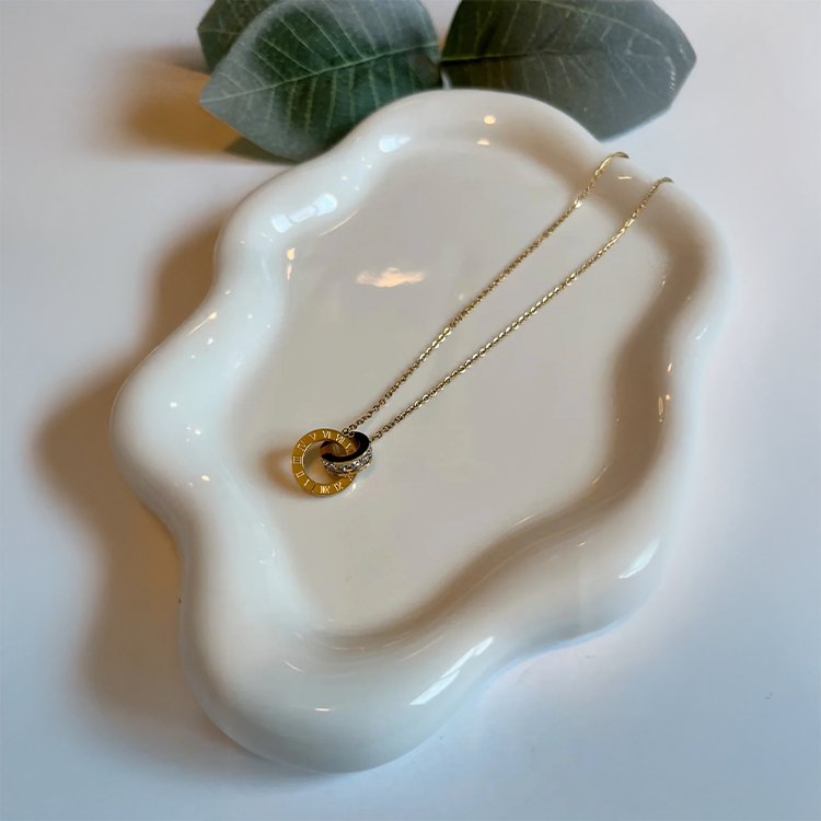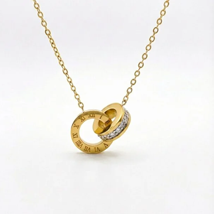 Minimal yet meaningful, the Double Circle Dainty Roman Numeral Necklace blends timeless symbolism with modern elegance. Featuring two interlocking circles engraved with Roman numerals and accented with delicate cubic zirconia inserts, this necklace represents eternity, connection, and unforgettable moments.