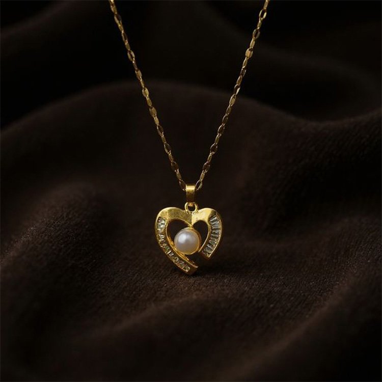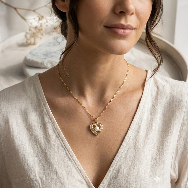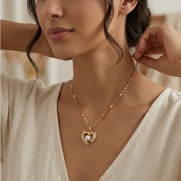 - Pendant Design: Heart frame with pearl