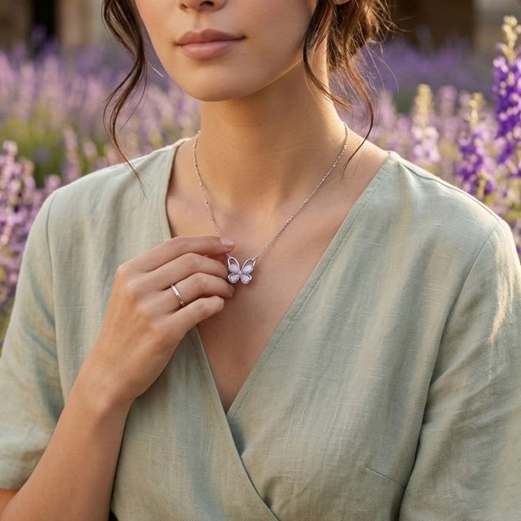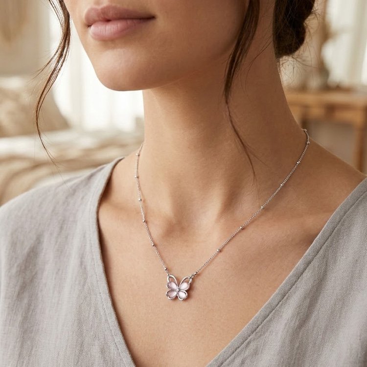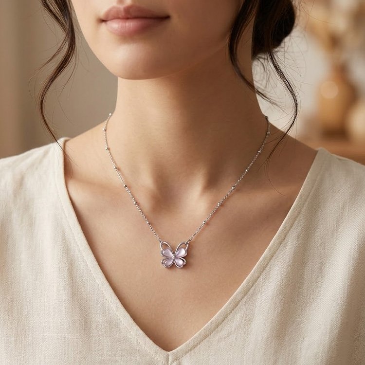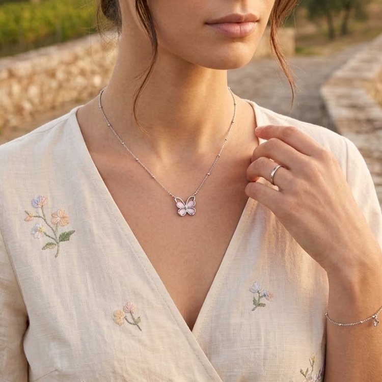 Delicate, romantic, and effortlessly elegant — the Pastel Butterfly Station Necklace is designed to add a soft touch of charm to any outfit. This beautiful Silver-tone necklace features a graceful open heart-shaped pendant, symbolizing love and timeless beauty.