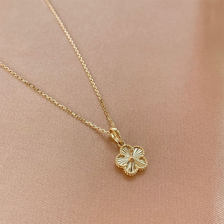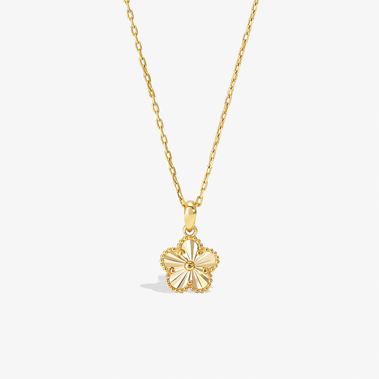 A delicate 14ct solid gold sunray flower necklace featuring a radiant 9.5mm floral pendant on an adjustable 45cm chain—timeless, lightweight, and made to last.